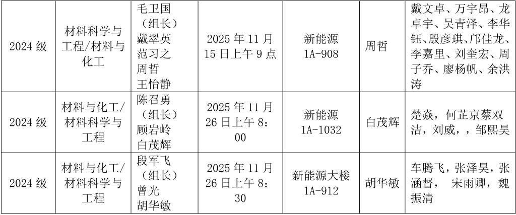 材料科学与工程学院2024级研究生学位论文开题安排表