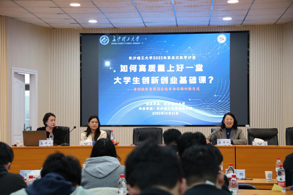 10月22日,由长沙理工大学教务处主办、城南学院承办的长沙理工大学2025年第三次教学沙龙在金盆岭校区第二教学楼201教室顺利举行。本次教学沙龙聚焦“如何高质量上好一堂大学生创新创业基础课”主题,邀请湖南工商大学创新创业学院汤明副教授与我校卓越工程师学院党委副书记兼副院长陈华担任主讲嘉宾,活动由城南学院副院长贺晖主持,院长李平,校教务副处长唐欣、学院副院长刘卓明、曹志明及其他各学院承担该课程的教师代表共60余人参会。