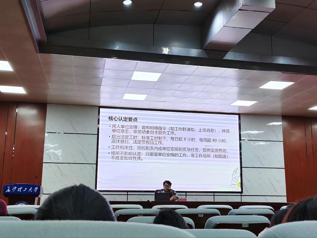 厘清职场边界,法治赋能未来。此次通识讲座的成功举办,是一次推动劳动关系规范化的有益探索。它以鲜活案例和专业法理为破解“隐形加班”困局提供思路。未来,长沙理工大学法学院将持续深耕数字法治领域,通过系列专题讲座等活动搭建法理研究与实务应用的桥梁,为数字经济健康发展输送法治力量,让法学教育在回应时代需求中绽放更耀眼的光芒。(文/陈秋妮 图/学创部 一审/邓欣欣 二审/何凌 三审/徐莉)