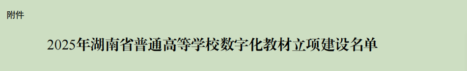 近日,湖南省教育厅正式发文公布2025年普通高等学校数字化教材拟立项建设名单,我院徐莉教授牵头工程法教学团队编写的《建设工程合同法与招标投标法》教材成功入选。作为本次我校省级数字化教材建设立项的7本教材之一,实现了我院在省级教材建设领域的历史性突破,可喜可贺!