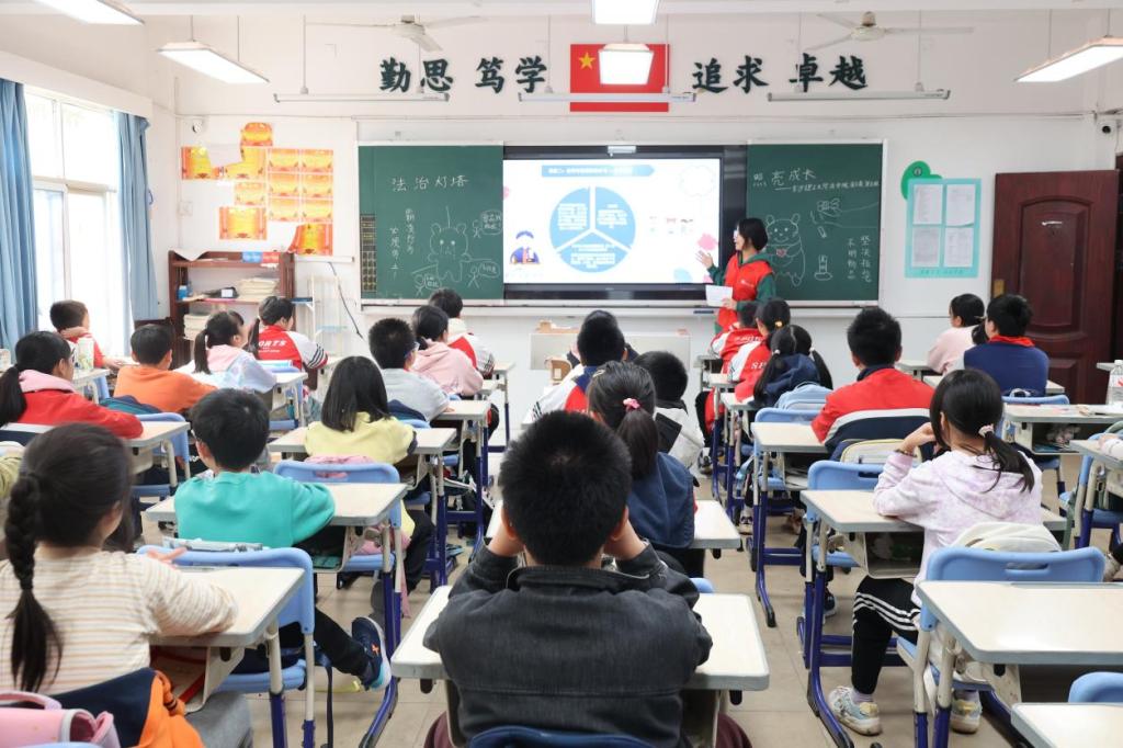 11月4日下午,长沙理工大学法学院蒲公英普法团两支队伍分别走进子弟学校与黄土岭小学,以“法治灯塔,照亮成长”为主题开展禁毒与防霸凌普法活动,通过生动的课堂与互动为两校学生普及反霸凌、远离毒品相关知识。