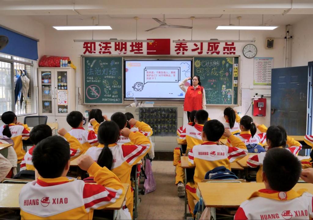 在反霸凌宣讲课堂上,普法团队员结合《未成年人保护法》相关条文,以适合小学生的语言表达阐述了霸凌的表现形式,用真实案例说明校园霸凌的危害,教导小朋友们在面对校园霸凌时要“及时报告、保全证据、优先自保”;在禁毒宣传中,普法团队员详细讲解了毒品的分类、伪装特性及多维度危害,通过实物图片直击新型毒品伪装陷阱,引导同学们树立毒品防范意识。