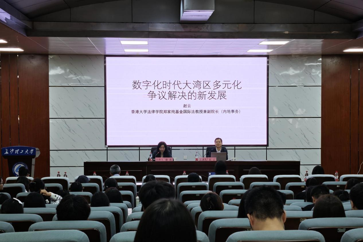 9月27日下午14:00,长沙理工大学研究生第十七届云影讲坛暨云影法学名家讲坛第4期“数字化时代大湾区多元化争议解决的新发展”专题讲座在第四教学楼学术报告厅顺利举行。本次讲座特邀香港大学法律学院副院长赵云教授担任主讲人,法学院副院长徐莉主持,我院师生共200余人参加。