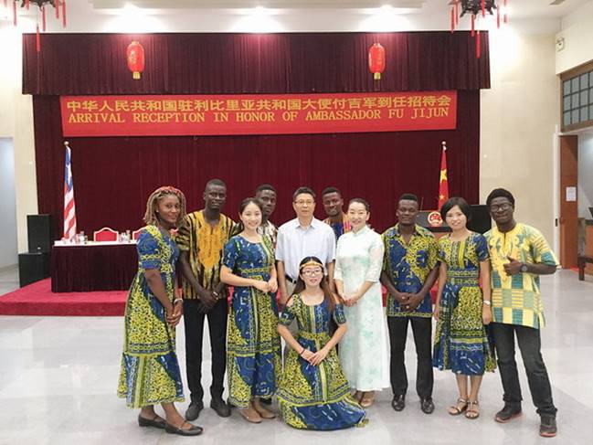 当地时间4月10日晚上8点,中华人民共和国驻利比里亚共和国特命全权大使付吉军到任招待会于中国驻利使馆举行。利现任副总统泰勒,议长钱伯斯,前副总统博阿凯,利各部委政要,各国驻利外交使节,利媒体以及中资机构代表,华人华侨和使馆外交官等三百余人出席。利比里亚大学副校长艾伦博士(Dr.Alan),利比里亚大学孔子学院教师代表应邀出席招待会。利大孔院的志愿者教师和学生们在招待会上表演非洲舞蹈,演出大获赞誉。