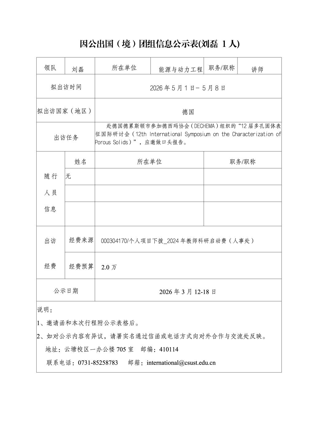 因公出国(境)团组信息公示表(刘磊 1人)
