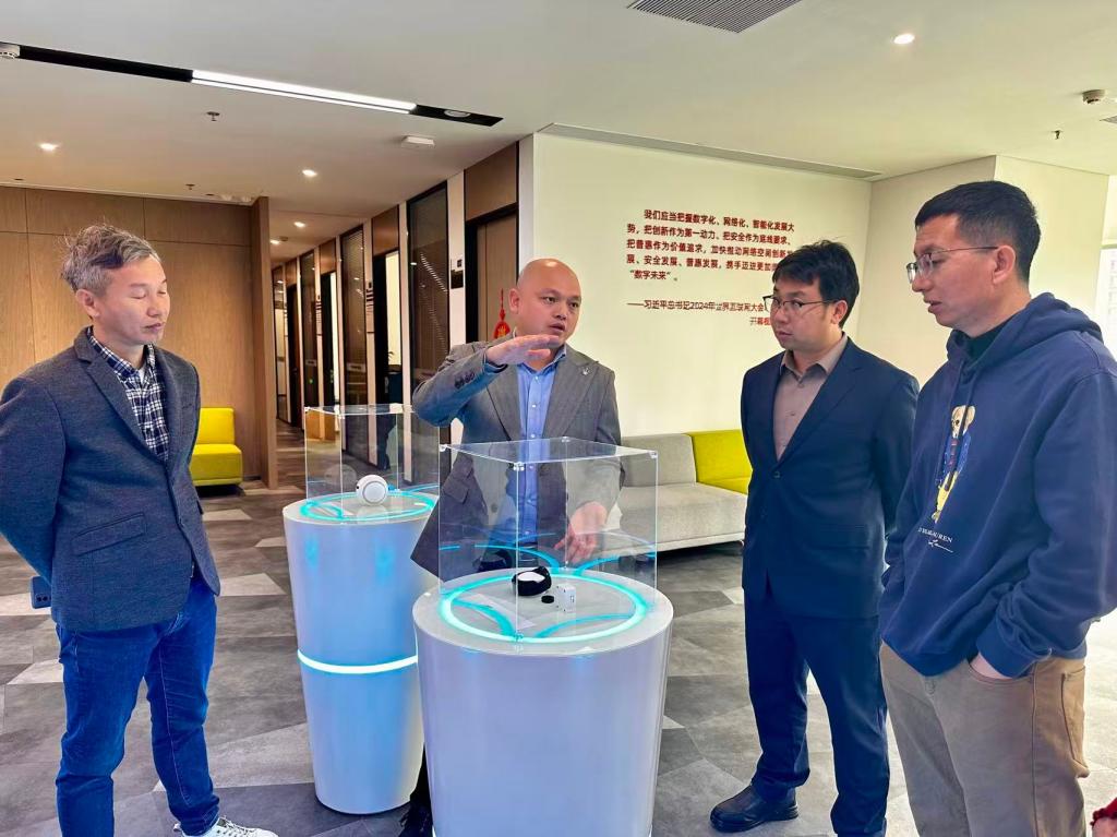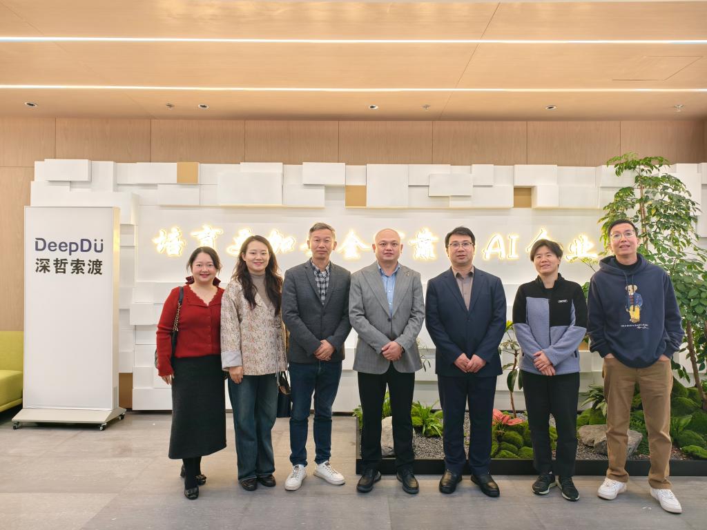 随后,在广东深哲索渡人工智能科技有限公司,黄黎明一行参观了企业办公环境与产品展示区,了解了公司在人工智能算法研发、智能系统集成等方面的核心优势及产品应用场景。座谈交流中,公司总经理李冰分享了企业发展历程与创新经营理念,分析了人工智能行业发展趋势,重点强调当前对计算机、人工智能等专业高素质人才的迫切需求。双方就毕业生提前到岗实习、在校生社会实践基地建设、到校招聘安排等事宜作进一步沟通,明确了后续校企合作方向。