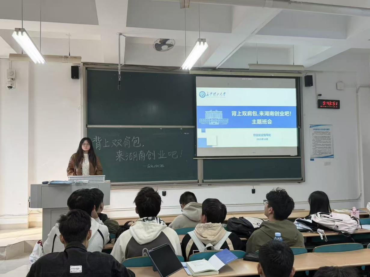10月20日至11月4日,长沙理工大学化学与医药工程学院积极响应学校号召,组织全院各班级召开了以“背上双肩包,来湖南创业吧!“为主题的创业政策学习班会,深入贯彻落实《湖南省大力支持大学生创业若干政策措施》等文件精神,将创业教育深度融入人才培养全过程。