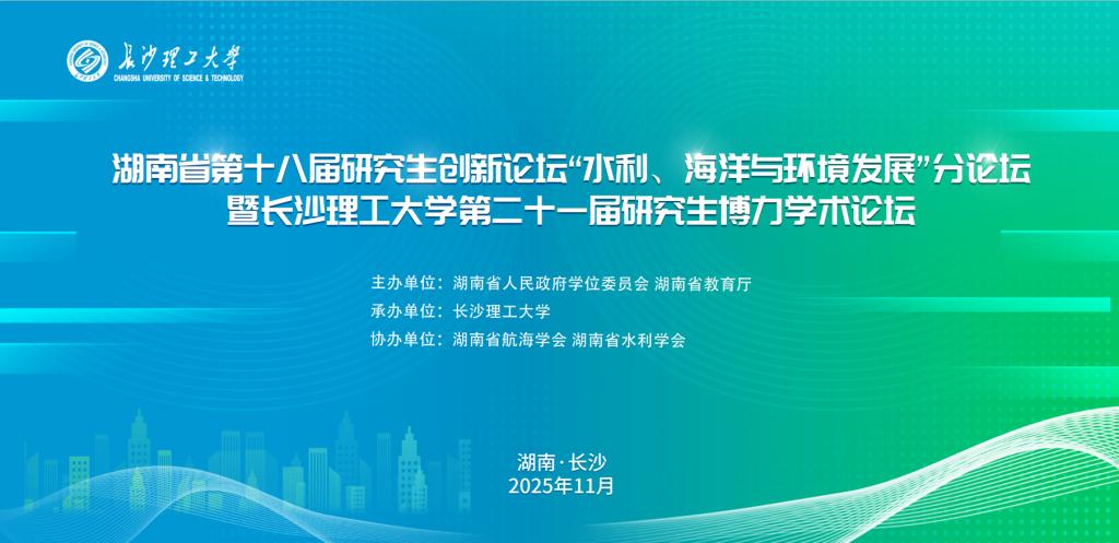 由湖南省人民政府学位委员会、湖南省教育厅主办,长沙理工大学承办,湖南省航海学会、湖南省水运学会协办的湖南省第十八届研究生创新论坛“水利、海洋与环境发展”分论坛暨长沙理工大学第二十一届研究生博力学术论坛将于2025年11月1日-11月2日在长沙理工大学云塘校区举行。