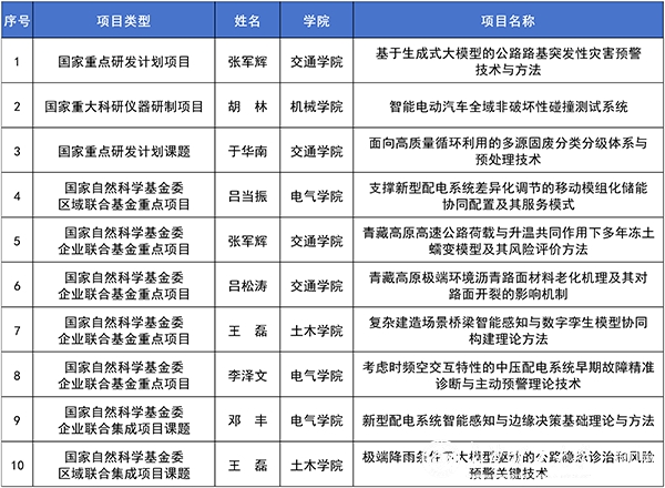 根据国家科技部和国家自然科学基金委员会公布的国家级重大重点项目立项结果,今年我校在主持立项方面实现新跨越,共斩获10项国家级重大、重点项目,包括国家重点研发计划项目1项、国家重点研发计划课题1项、国家重大科研仪器研制项目1项以及国家自然科学基金委联合基金重点项目7项。联合基金重点项目中,包括企业联合基金重点项目4项、区域联合基金重点项目1项、企业联合集成项目课题1项以及区域联合集成项目课题1项,立项总数创我校年度历史新高。