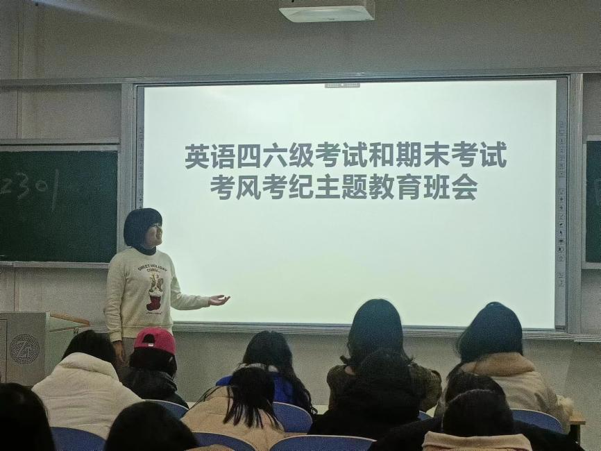 班主任深入班级,认真组织召开考风考纪教育主题班会,运用反面案例开展警示教育,提醒学生自觉抵制考试作弊等违法违纪行为;领学相关规章制度,告诫同学们知底线、守红线、不越线,筑牢诚信考试的坚实基础。