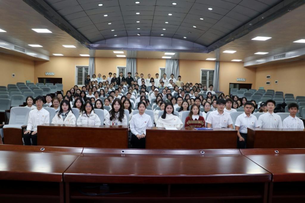 11月20日晚,计算机学院第十六期“青马班”开班仪式暨第二十三届团委学生会第一次全体会议于金盆岭校区四号教学楼报告厅召开。计算机学院团委书记黄敬言、25级助理辅导员成嘉仪出席开班仪式,第十六期青马班学员一百余人参加开班仪式。