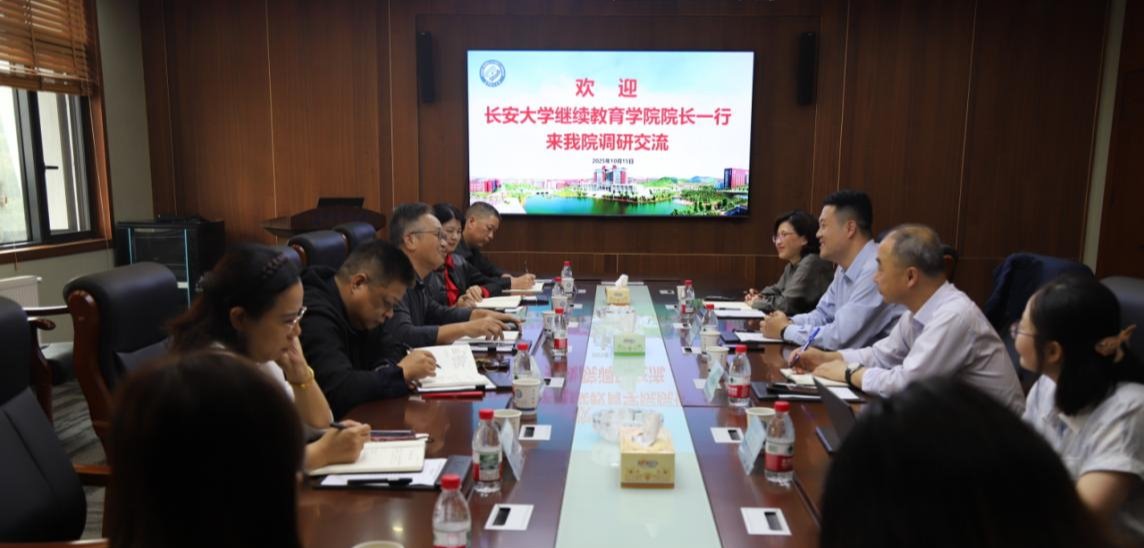 2025年10月15日上午,长安大学继续教育学院院长涂帅一行来我院调研交流。双方在15教四楼会议室进行了座...