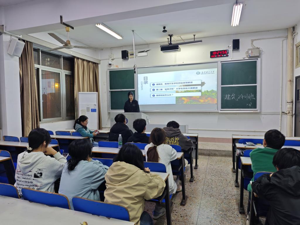 班会中,各班级围绕四大核心内容展开系统学习。首先,通过PPT演示、案例分析等形式,详细解读《湖南省大力支持大学生创业若干政策措施》中的“七个一”举措,包括搭建创业服务平台、落实创业扶持资金、组建导师队伍等关键内容,让同学们清晰了解省级层面的全方位支持。随后,重点学习湖南省教育厅“两直接”政策与长沙理工大学“三优先”“两配套”“六可以”举措,针对休学创业保留学籍、弹性学制申请、校内场地免费使用等与学生密切相关的条款,逐一明确申请条件与办理流程,现场解答同学们的疑问。