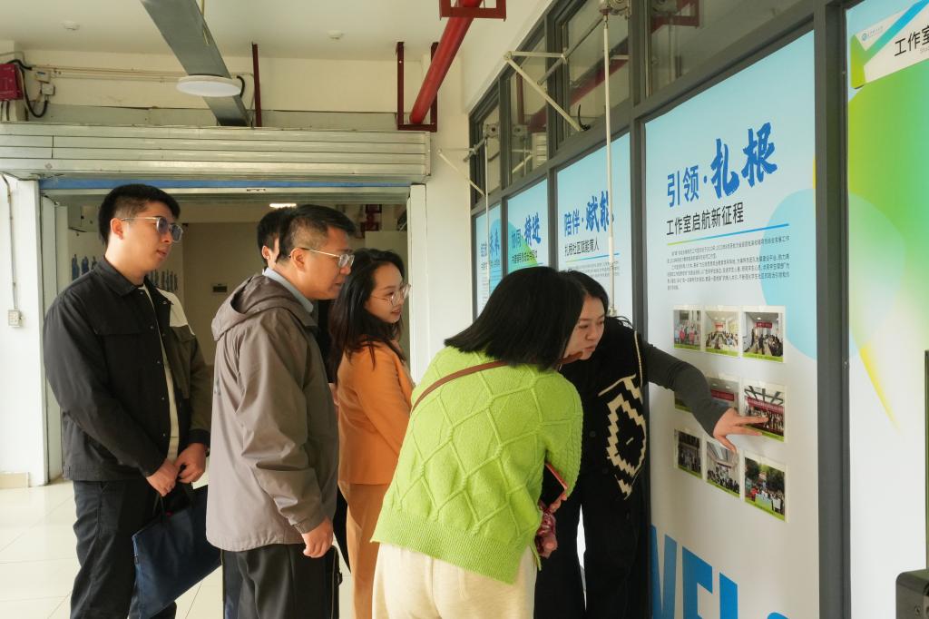 考察组一行首先来到位于敏行轩2栋的辅导员工作室进行实地参观。罗亦欧详细介绍了学校辅导员工作室的建设现状、空间布局与功能定位,并分享了工作室前期开展的一系列特色育人活动。双方围绕辅导员工作室在运行管理中遇到的难点与痛点进行了深入探讨,现场交流气氛热烈。随后,双方前往新能源2号大楼,就辅导员素质能力大赛的备赛经验展开座谈。罗亦欧结合自身参赛经历,围绕赛事流程、关键环节、备赛策略等方面作了详细汇报,并与来访同仁分享了实战心得与能力提升路径,为彼此今后的备赛工作提供了宝贵借鉴。