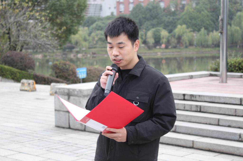 11月11日清晨,能动学院于云塘校区图书馆前坪组织2025级新生升旗仪式,2025级辅导员罗亦欧、李逸奇及能动专业全体学生参与本次活动。
