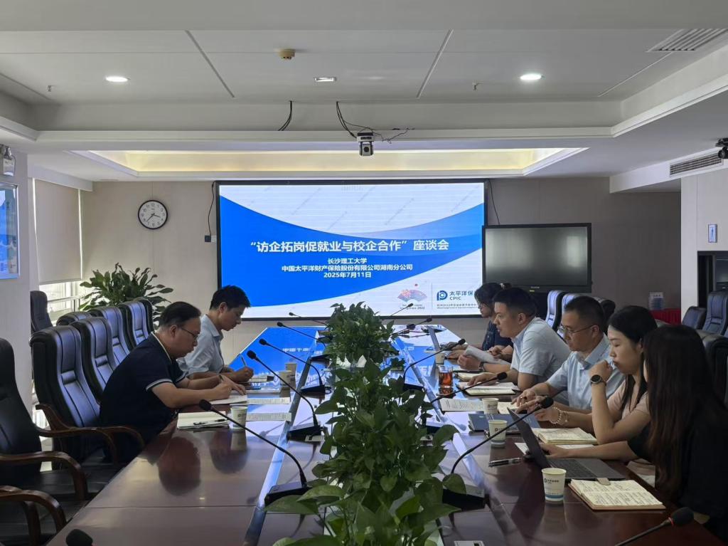 2025年7月11日,长沙理工大学机械与运载工程学院党委副书记周小杰带队赴中国太平洋财产保险股份有限公司湖南分公司(以下简称 “太平洋财险湖南分公司”)开展就业专题座谈。此次活动旨在深化校企就业合作,精准对接岗位需求,为学院毕业生搭建优质就业渠道。太平洋财险湖南分公司人力资源部副总经理蒋超皇、客户理赔经理胡智慧、人力资源部培训经理邓心仪出席座谈,2024届已入职该公司的校友毕业生陈翔逸、张眺、李若溪受邀参与交流。