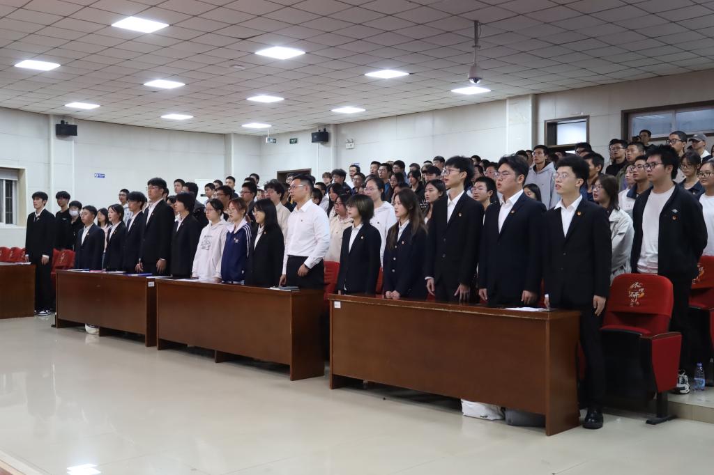 会议在全体奏唱的团歌声中拉开序幕。龚亮以“如何做好共青团干部”为主题,为参会团学干部阐述了共青团的性质和新时代的基本任务。他强调,共青团工作最根本的属性是政治性,共青团干部在工作中要提高政治站位,增强在青年学生群体中的思想政治引领作用。他结合自身学生干部经历,对参会学生干部提出了三点希望:一是做好学生本职工作,在学习和生活中争先创优,发挥共青团干部的引领作用;二是要以高标准履职尽责,做到“手勤、脑勤、腿勤、嘴勤”;三是要强化责任担当,将学生工作当作“一项事业、一门学问、一份责任、一种生活”,扮演好沟通桥梁的角色。