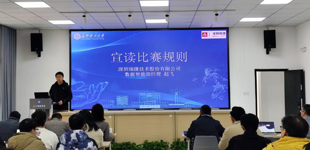 1月15日,由长沙理工大学与深圳瑞捷技术股份有限公司联合主办,人工智能学院承办的“校企联合AI创新竞赛”决赛顺利举行。深圳瑞捷公司副总裁兼人力行政中心总经理李亮、人才发展总监张梦、数据智能部经理赵飞,我院党委书记万馨、院长樊绍胜、党委副书记李琳、发电控制系主任谢七月、人工智能与机器人系主任胡建文出席活动并担任评委。