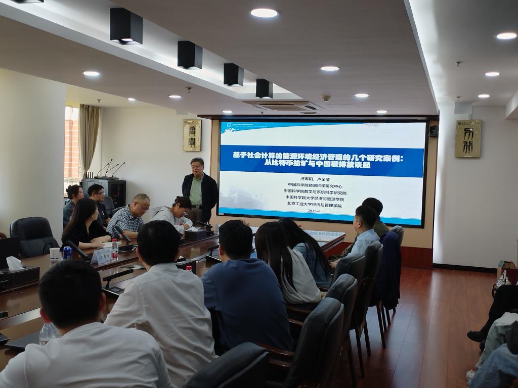 汪寿阳简要介绍了社会系统模型建构和应用领域,重点分享了7个基于社会计算的能源环境经济学的研究案例,并深入浅出地谈了对交叉学科研究与发展的几点思考。他指出交叉学科的研究与发展非常重要,应该紧扣国家社会重大问题,要以好的视角,要保持敏锐的洞察力和前瞻性思维。广泛深入、生动形象的学术案例,极大地帮助老师们开拓了研究思路和视野。