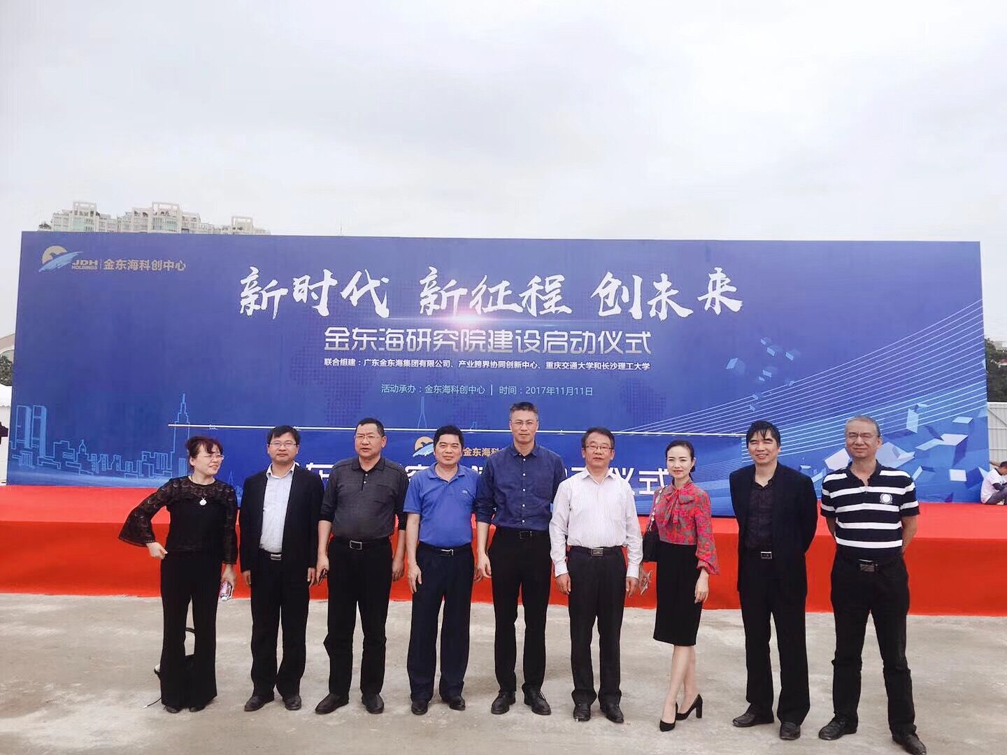 11月11日,由我校与广东金东海集团,联合重庆交通大学、产业跨界协同创新中心组建的金东海研究院在汕头华侨经济文化合作实验区举行了建设启动仪式。校党委书记付宏渊,副校长蒋昌波,原副校长黎正稳,以及科技成果转移转化中心常务副主任李岳林,水利学院党委书记喻玲娜、常务副院长胡旭跃、副院长程永舟,材料学院院长晁自胜受邀出席。广东金东海集团有限公司董事长周壬旭热情接待了来访嘉宾。