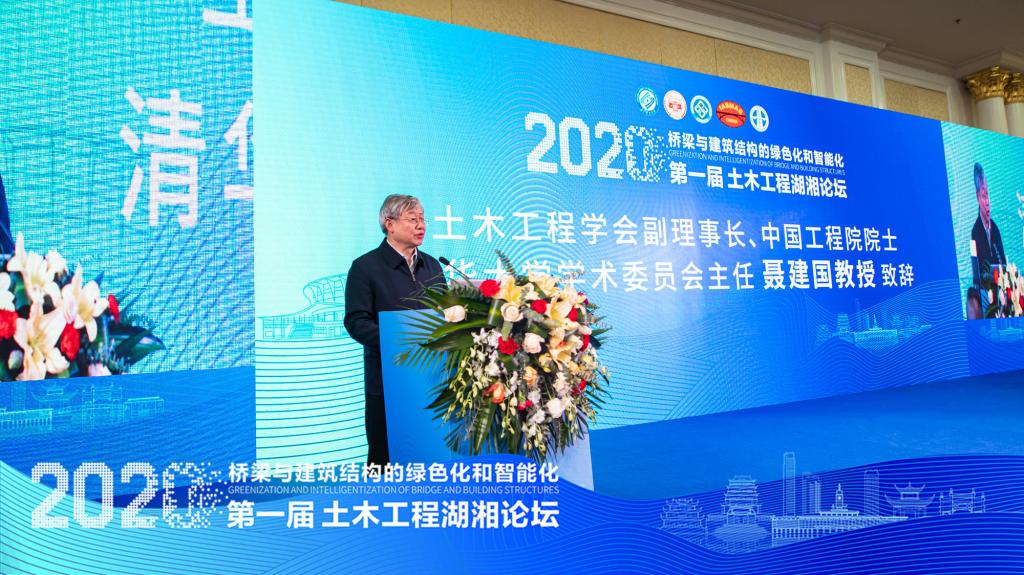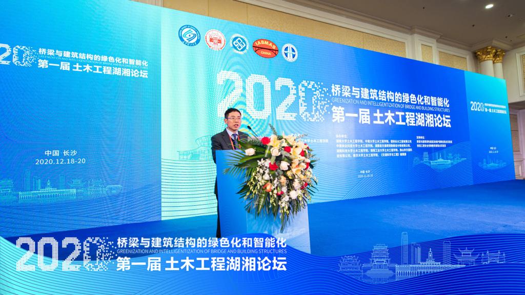 为积极践行党的十九届五中全会提出的“构建系统完备、高效实用、智能绿色、安全可靠的现代化基础设施建设体系”,全面落实习近平总书记考察湖南提出“三高四新”重要指示,抓住“新基建”“智能制造”新兴优势产业链建设,走出一条创新引领、开放崛起,生态优先、绿色发展,区域协调、共建共享的路子,为富饶美丽幸福新湖南建设提供新动能,2020年12月18日-20日,以“桥梁与建筑结构的绿色化和智能化”为主题的第一届土木工程湖湘论坛在长沙召开。