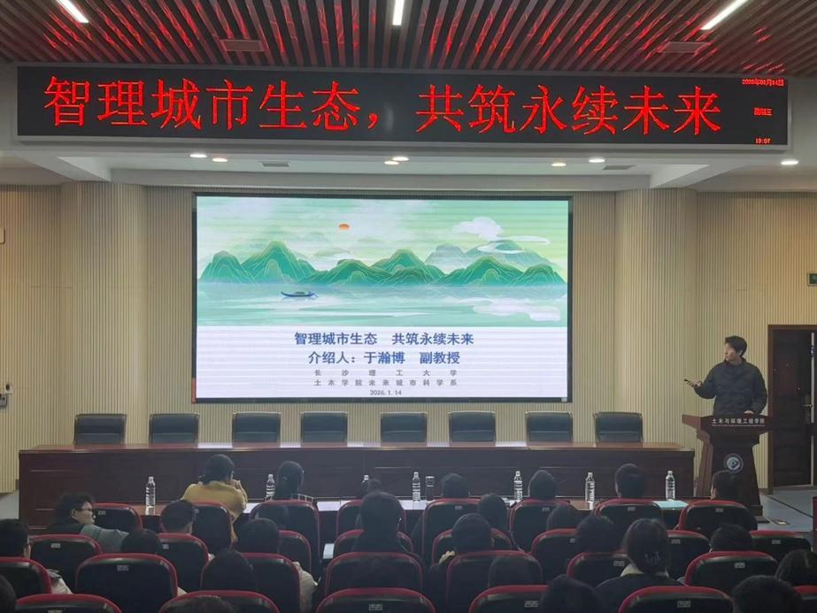 为深化学生对专业前沿技术的认知,激发学习兴趣与创新意识,1月14日晚上,土木学院在工二B302开展主题为“构筑蓝色星球的绿色方程”的通识教育讲座,未来城市科学系于瀚博副教授应邀主讲,90余名本科生参加讲座。