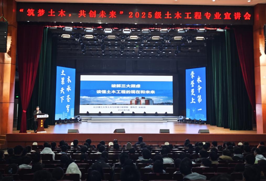 讲座聚焦土木工程专业学生核心顾虑,结合专业认知调查结果,围绕三大核心展开。首先直击行业前景、学习压力、工作环境三大痛点,用真实数据破除 “行业降温”“专业难学”“工地艰苦” 的认知偏差,阐明行业刚需属性与发展潜力。随后介绍长沙理工大学土木与环境工程学院六十余载积淀,涵盖学科排名、专业布局、师资力量等核心优势,凸显桥梁、隧道等特色方向的教学与实践实力。最后分享校友资源、就业保障与国内外行业机遇,给出针对性行动建议。