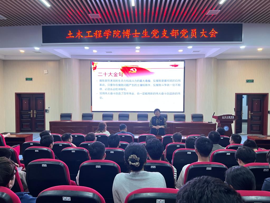 4月14日,土木工程学院博士生党支部党员大会在工科二号楼B302召开。土木工程学院党委副书记黄阿明出席会议,会议由研究生辅导员汪国栋主持。博士生党支部各支部委员以及党员博士研究生参加会议。其中,会议应到党员72人,实到线下40名、线上30名,符合规定人数。