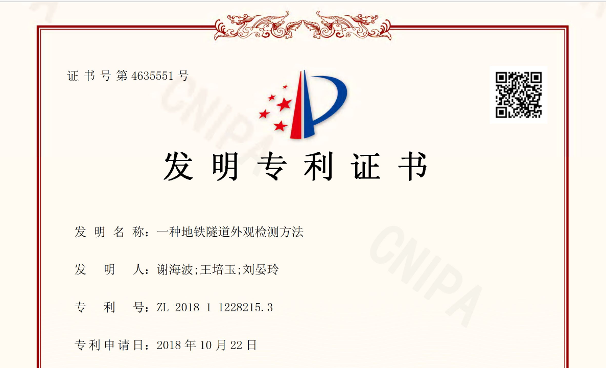 u机器视觉技术是整个系统的核心技术,我们已经掌握其核心技术,并获得发明专利授权。已经完成高铁100m,地铁隧道400m数据的图像处理;硬件设备和图像处理技术均达到国内领先水平。