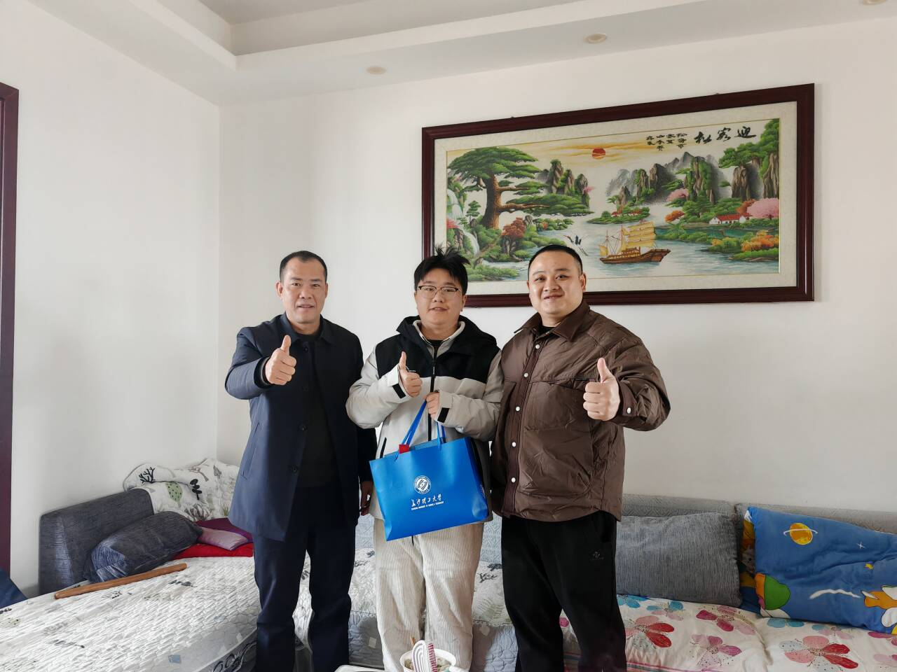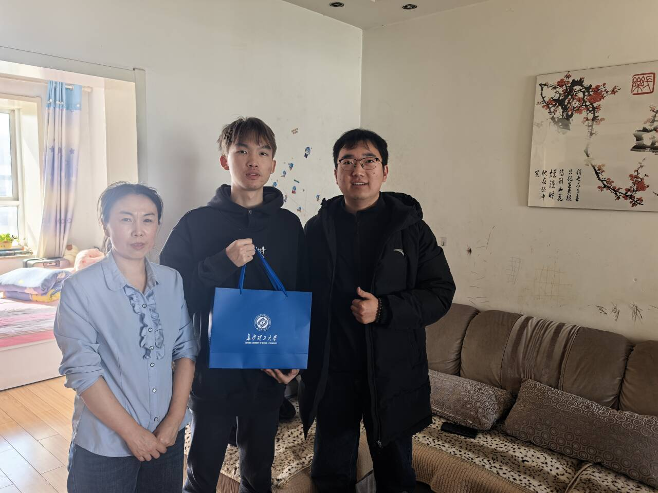 2月10日至2月28日,辅导员们深入河南三门峡、平顶山,山西长治、湖南岳阳、邵阳、怀化等多地,先后走访了9位学生家庭,为受访学生送上精心准备的学校文创大礼包,了解学生在地情况,并传递学校对学子的牵挂与祝福。