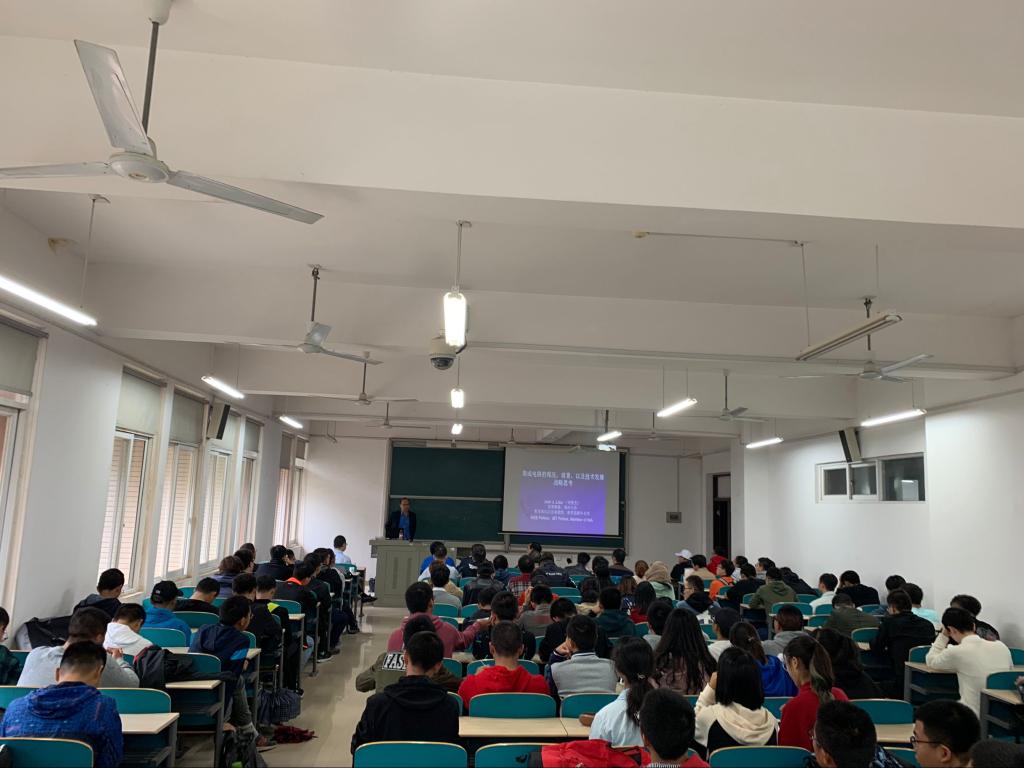 报告会上,刘教授首先以硅材料为切入点,分析了中国集成电路发展状况及瓶颈问题,引发老师和同学们的深思。目前中国集成电路发展势头良好,但是芯片技术,微处理器等核心基本依赖进口。报告最后,刘教授结合自己的科研经历,给在场的师生提出了一些自己的建议,希望大家在科研中要有正确的心态,不骄不躁,注重积累。同时在高校发展电子领域的战略规划上,他也给出了自己独到的见解。