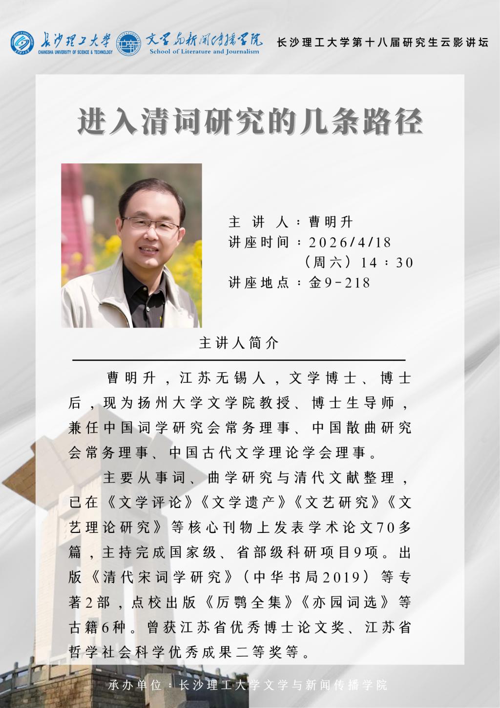 讲座预告:进入清词研究的几条路径