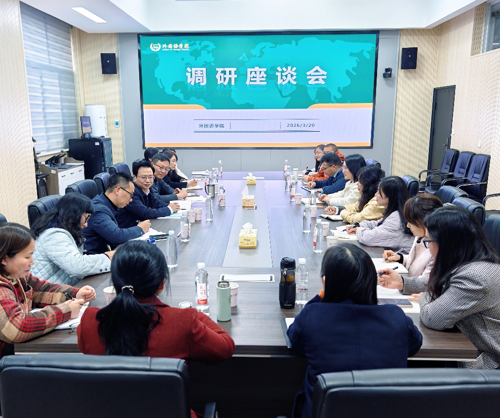陈志国认真听取汇报,对学院在人才培养、教学改革、学科竞赛、社会服务等方面取得的成绩给予了充分肯定,对全院师生表达诚挚问候。他指出,外语学科是学校人文社科的重要支撑,是提升学校国际化水平、培养复合型人才的关键力量。面对人工智能与新文科发展新形势,学院要主动识变应变,加快转型发展。他要求,学院要进一步推动“开门办教育”,贴近国家“一带一路”倡议、“文化出海”战略、湖南中非经贸论坛等大形势改进科学研究、人才培养和社会服务等工作,要依托学校的理工科优势办特色鲜明的外语教育,要借鉴其他高校的先进理念和经验办高水平的外语教育,要进一步团结带领广大教师群策群力,在全校争创“双一流”的过程中作出更大贡献。