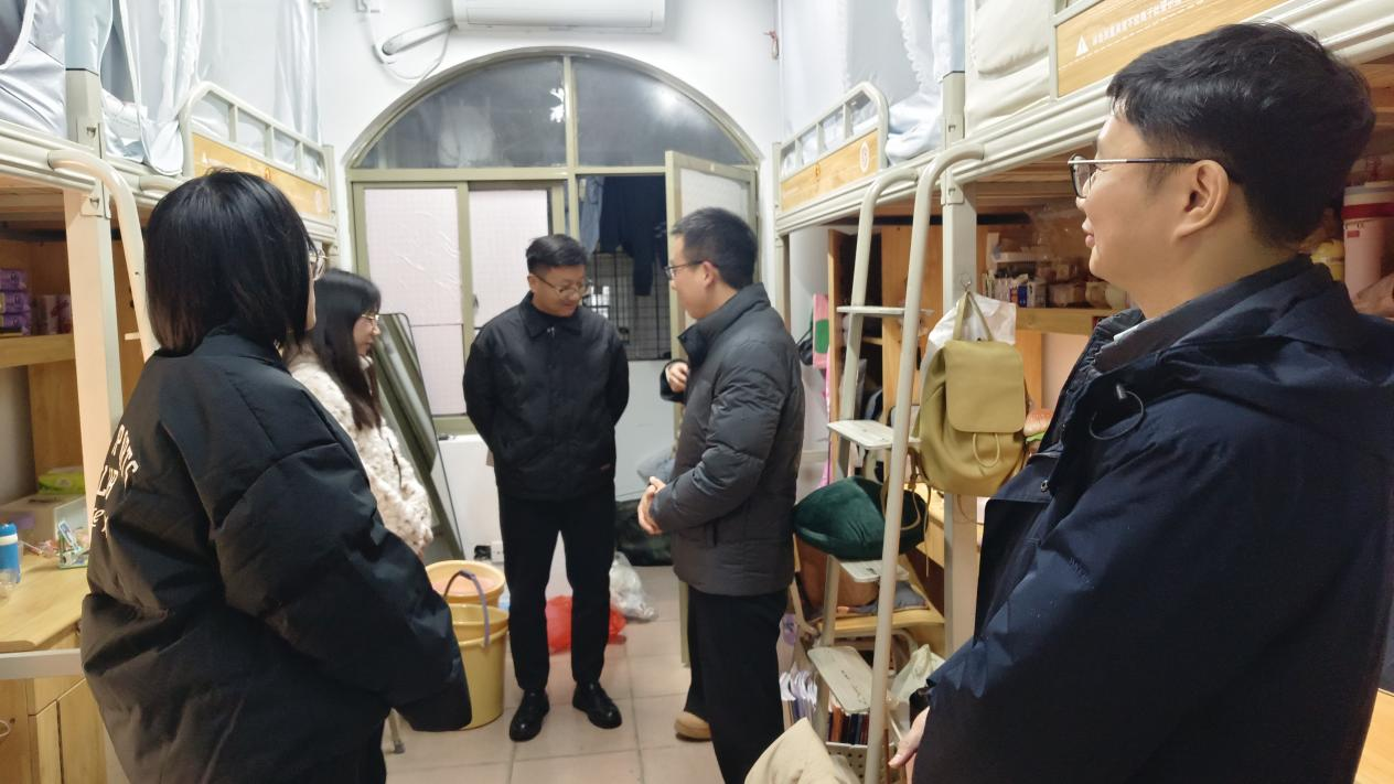 新学期伊始,为进一步掌握学生返校思想动态与生活适应情况,强化宿舍管理与安全保障,营造良好的学习生活环境,3月8日晚,外国语学院党委书记陈仁凯、院长段胜峰带领全体领导班子深入学生宿舍开展走访慰问,与同学们面对面交流,传递学院关怀,推动学生思想政治教育工作走深走实。