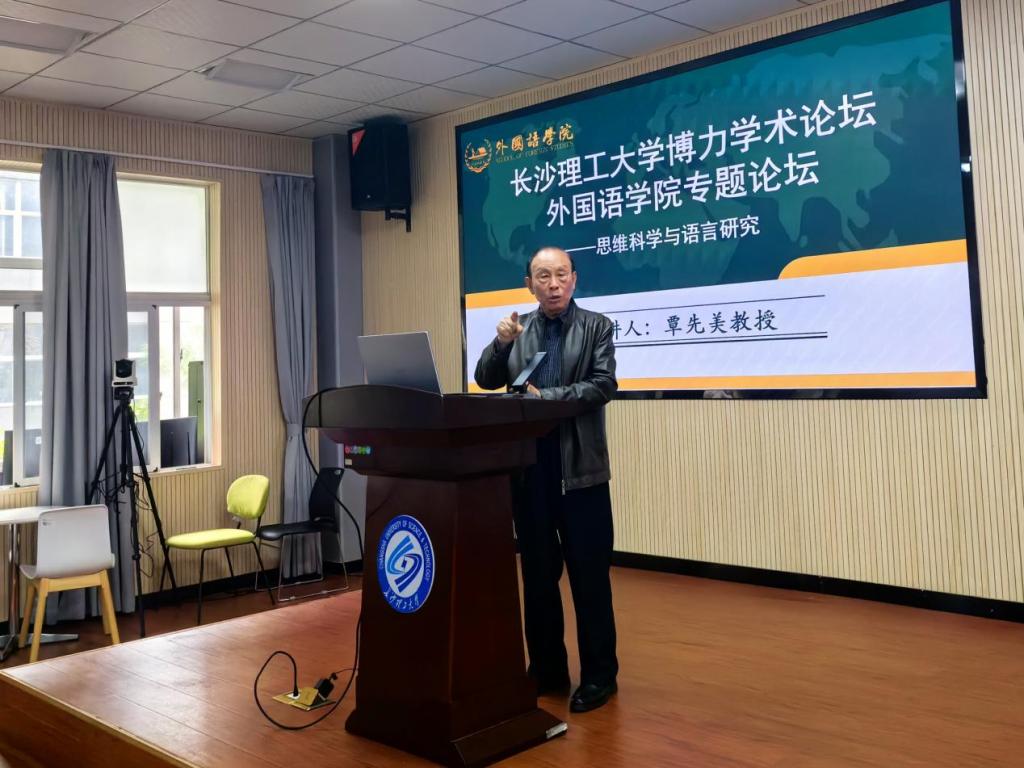 为提升师生学术创新能力,11月4日下午2点,长沙理工大学外国语学院特邀覃先美教授于金盆岭校区三教321报告厅开展了主题为“思维科学与语言研究”的博力学术论坛讲座。