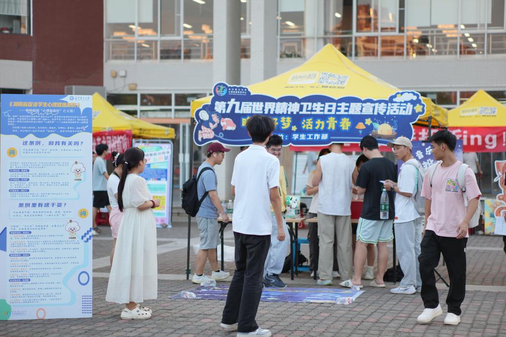 为提升全校学生对精神卫生知识的了解与重视,增强心理健康素养,促进健全人格发展,有效预防和应对心理问题,营造阳光积极的校园氛围,长沙理工大学学生工作部心理健康教育中心于10月10日举办了第九届世界精神卫生日主题宣传开幕活动——“晚安好梦,活力青春”广场游园会。活动在云塘与金盆岭两校区同步开展,吸引了约900人次学生积极参与。游园会融合科普性、趣味性和生活化互动于一体,让学生在轻松愉快的氛围中掌握睡眠与心理健康知识。