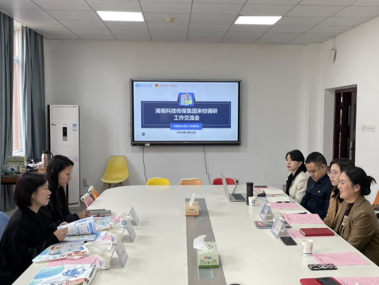3月22日上午,湖南科技传媒集团发展部主任谢琳一行来我校开展调研,校团委书记孙小琴、副书记陈璐莎及各学院团委书记代表出席,围绕加强科学普及工作、弘扬科学家精神、提升青少年科学素养等专题开展交流。