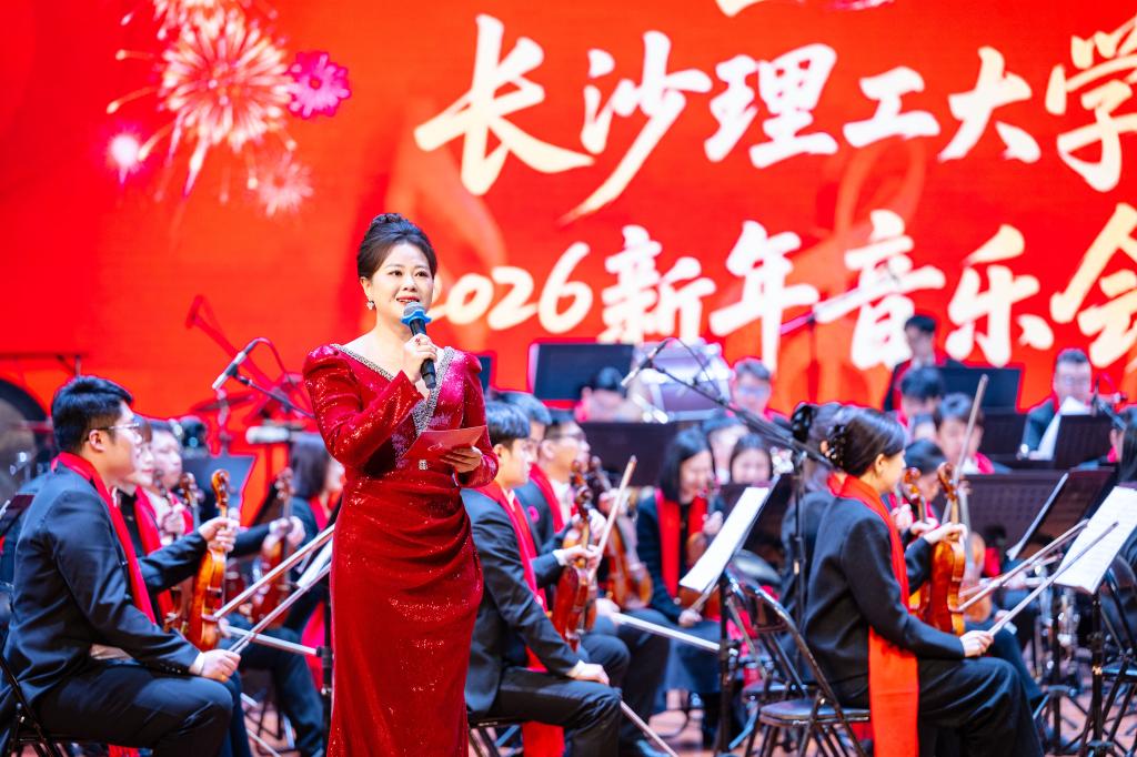 1月6日下午,“湖南省高雅艺术进校园”长沙理工大学2026新年音乐会在云塘校区大会堂举行。活动由湖南省教育厅、中共湖南省委宣传部、湖南省财政厅、湖南省文旅厅主办,长沙交响乐团与我校联合承办。校长蒋昌波及全体在家校领导、长沙交响乐团总经理陈照等嘉宾与学校1300余名师生代表共同观赏演出。