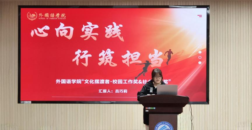答辩会上,来自各年级的32名候选人依次登台,结合自身经历,分享了在专业竞赛、文化交流、社会实践、思想政治与文体艺术等领域的成长与感悟。他们以扎实的专业素养、丰富的实践经历和昂扬的精神面貌,展现了外语学子在跨文化沟通与服务社会中的担当与风采,现场掌声不断。学院相关负责人表示,本次答辩会不仅是对学生综合素质的集中展示,更是以榜样力量激励广大学子在专业学习与社会服务中不断突破自我、传播中国声音的重要平台。
