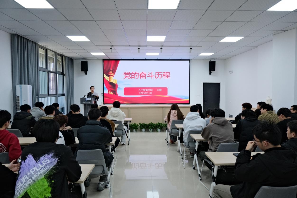 11月25日下午,人工智能学院党委书记万馨在学院A201会议室主讲2025级研究生“第一堂党课”,2025级全体研究生参加。