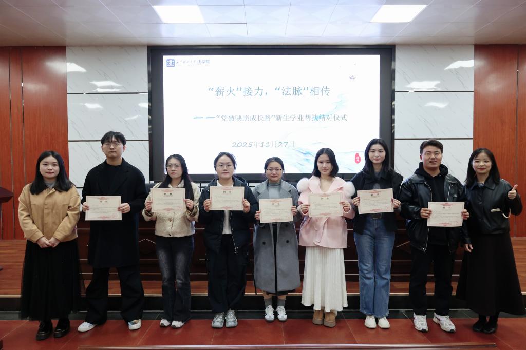 11月27日,法学院“薪火接力,法脉相传”新生学业发展启动仪式在金盆岭四教报告厅开展。活动由党建辅导员孙佳乐主持,新生辅导员曾宇欣参加会议。