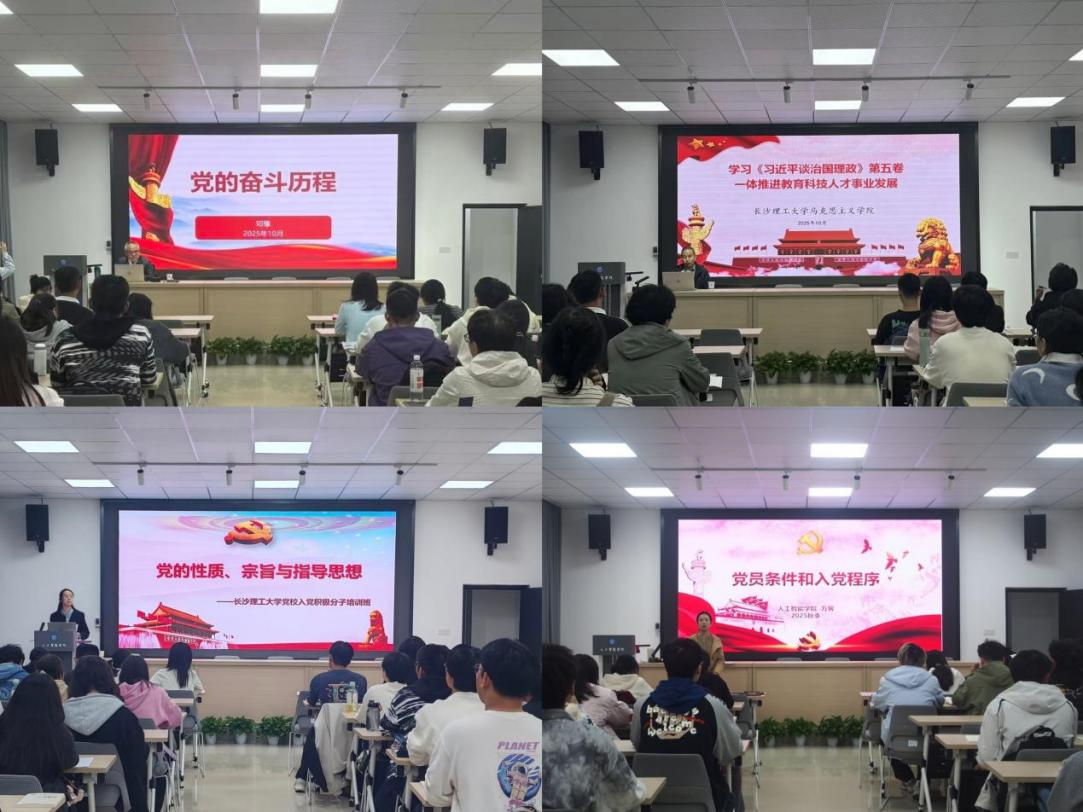 入党积极分子培训共开展四次理论授课。学院党委书记万馨解读了入党条件、党员权利义务,为同学们明确了流程节点。邓豫书记以“党的奋斗历程”为题分阶段梳理百年党史;余乃忠教授从四个维度解读教育科技人才对中国式现代化基础性、战略性支撑作用;叶鑫老师讲解了党的性质、宗旨与指导思想,明确“两个先锋队”等定位及指导思想发展脉络与内在联系。