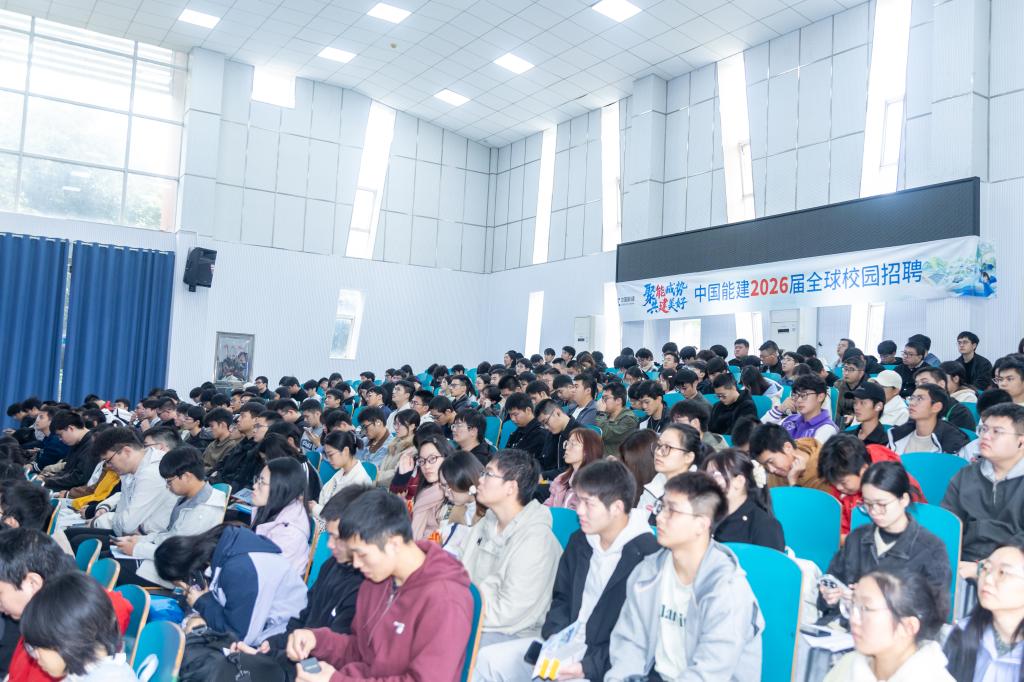11月10日下午,“聚能成势,共建美好”中国能建2026届全球校园招聘在我校云塘校区学生活动中心科技报告厅顺利举行。