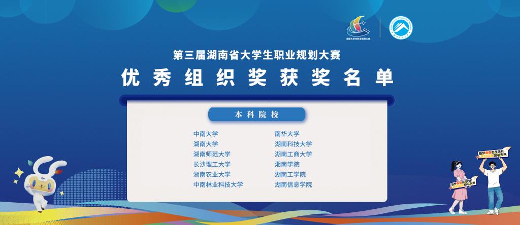 筑梦青春志在四方,规划启航职引未来。1月24日,湖南省第三届大学生职业规划大赛省级决赛在湖南科技大学圆满落幕。经过激烈角逐,我校交通学院黄河、计算机学院阿布杜拉·艾山两名同学均获成长赛道金奖,交通学院李特超老师、计算机学院刘洋老师获评优秀指导教师奖,学校荣获“优秀组织奖”。此外,我校参赛选手还取得银奖4项、铜奖2项的佳绩。