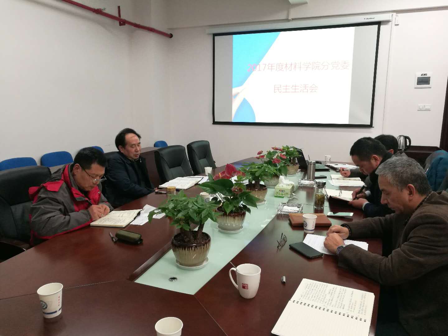 1月18日上午,根据学校《关于召开分党委2017年度民主生活会的通知》要求,材料学院党委在新能源大楼1号楼317会议室组织召开了2017年度民主生活会。副校长黄立宏、纪检监察处副处长孔凡志及材料学院党委领导班子全体成员出席会议,材料学院综合办主任干事、教工支部书记、院长助理列席会议。会议由学院党委书记张国强主持。