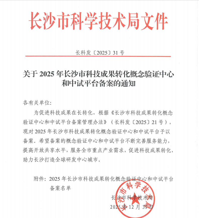 近日,长沙市科技局发布科技成果转化平台备案名单,由长沙理工大学材料科学与工程学院牵头申报的“长沙市交能融合新材料科技成果转化概念验证中心”成功获批。该中心的设立,是学校深化科技创新与产业服务的重要举措,也为长沙建设具有核心竞争力的科技创新高地增添了新动能。