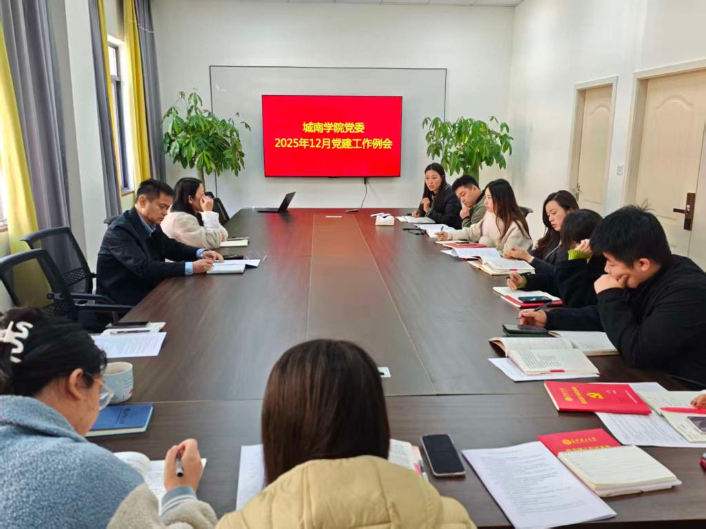 12月19日,城南学院党委在2教221会议室召开12月份党建工作例会,会议由党委书记施一满主持,副书记陶双、纪委书记曹志明及各总支、支部书记参加会议。