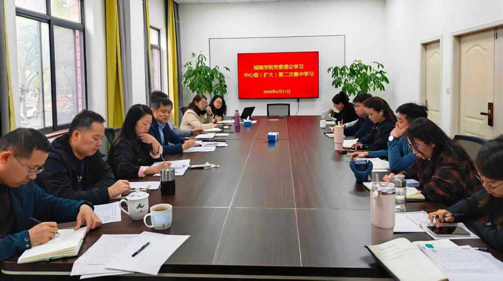 4月21日上午,城南学院举行树立和践行正确政绩观学习教育读书班暨院党委理论学习中心组(扩大)集中学习。学院党委班子成员、各部门(系)负责人参加。