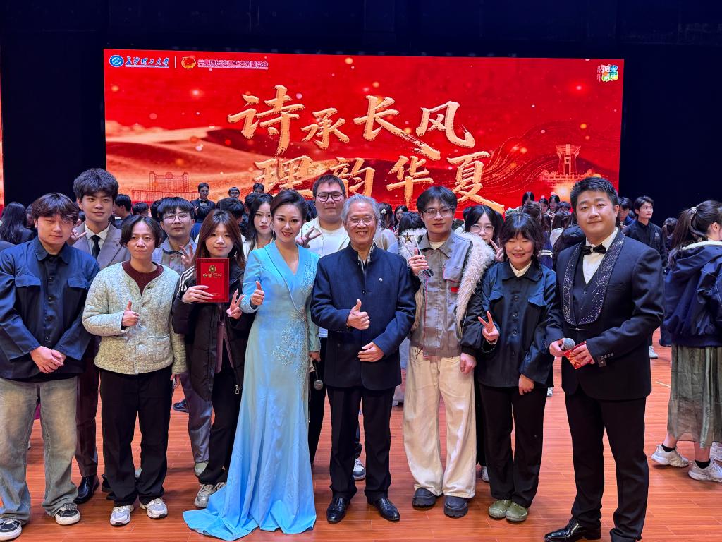 12月9日晚,长沙理工大学第二十二届“诗承长风,理韵华夏”十月诗会诗歌朗诵大赛决赛在云塘校区大礼堂圆满落幕。由我院王志鹏老师领衔,朱玉龙、宋雨涵、李文轩等12名学生共同演绎的原创朗诵节目《铣刀情》,凭借精湛的表演和深厚的情感张力,在激烈角逐中荣获大赛一等奖。