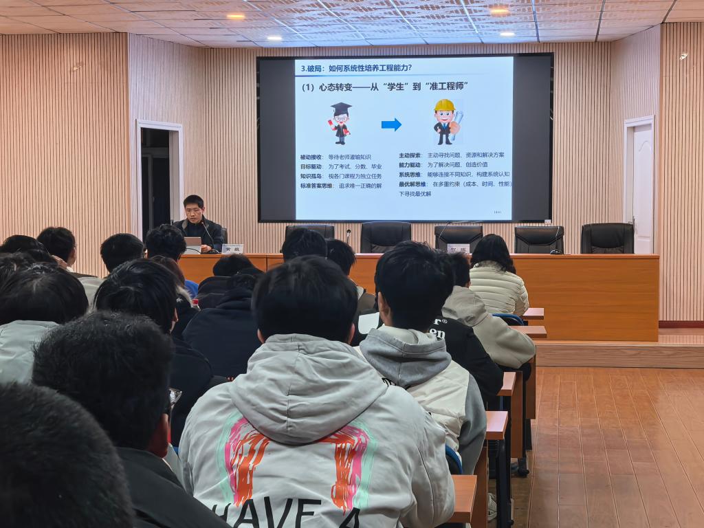 针对学生最关心的“如何培养工程能力”,黄毅在“破局”板块给出了系统性建议。他强调,除课堂学习外,要主动参与学科竞赛、企业实习、科研项目,通过“以赛促学、以练促能”积累实战经验,鼓励学子们敢于将理论知识转化为实践成果。最后,他在“总结与展望”中寄语学生,要以产业需求为导向,主动对接时代发展,将个人成长与工程领域发展紧密结合。